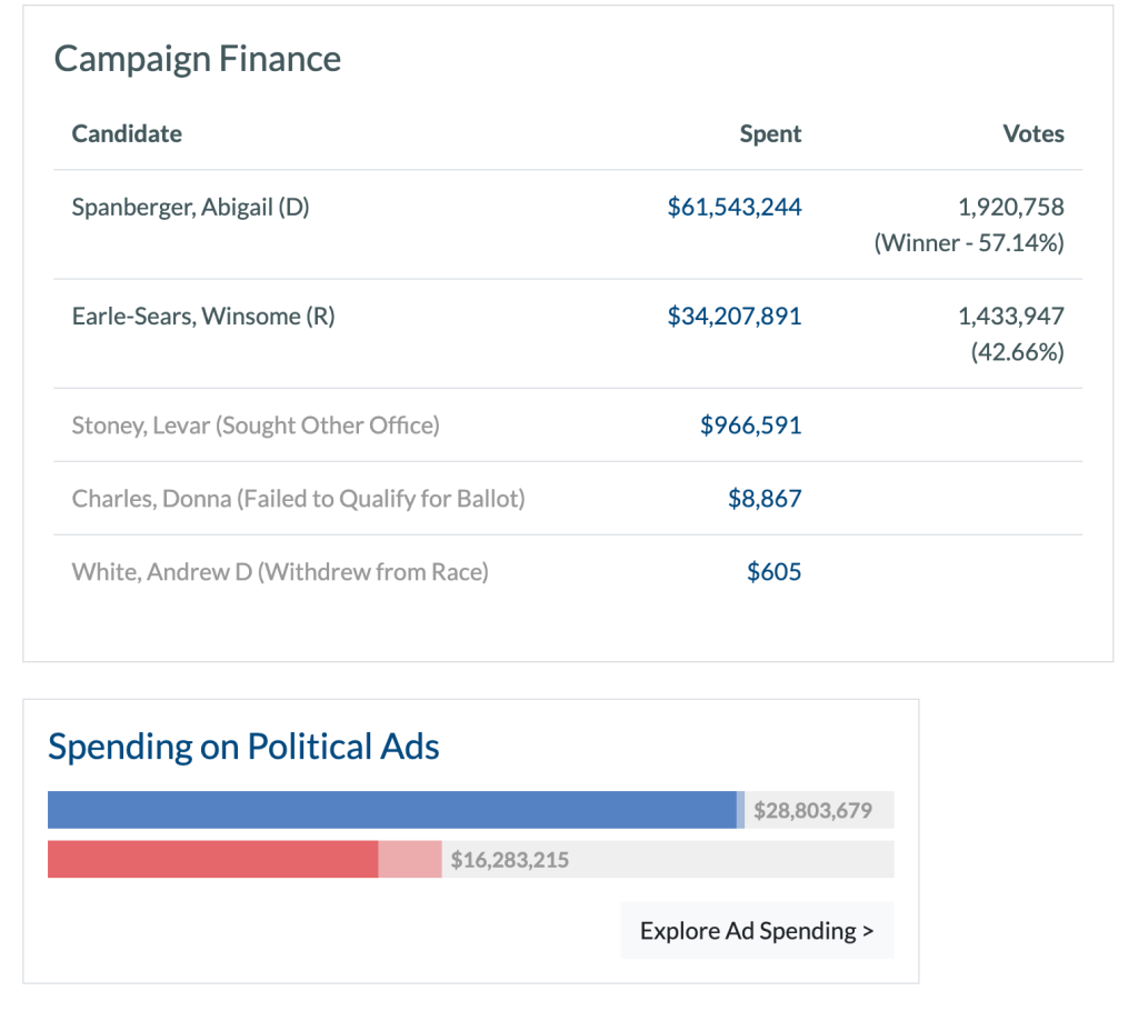 Money isn’t everything, but it can still help you motivate your partisans and drive down the reputation of the other candidate. Candidates don’t get 18-point swings from the previous election by doing nothing.