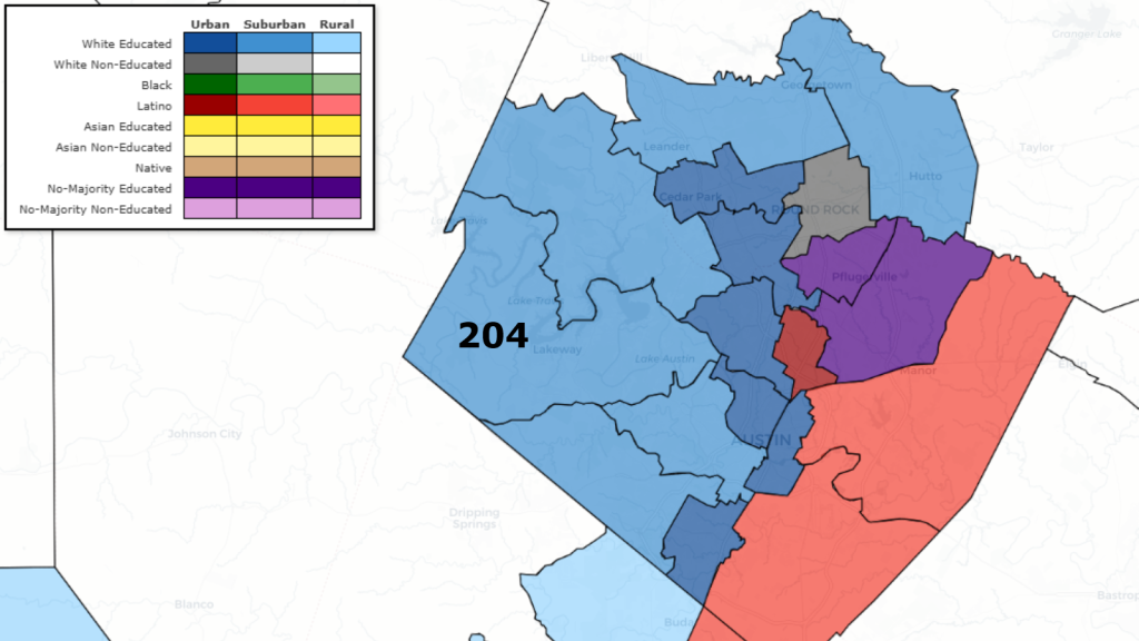 Let’s move from a demographic where Democrats have floundered in the Trump era, to one where they have had big gains: white, educated, and suburban people. 100K District TX-204 is in the outskirts of the Austin Metro, and shows this trend well. Trump won this district by 13% in 2016, but only by 4% in 2020. While he gained a bit of this vote back in 2024, the area is still to the left of what it was before the Trump era. Turnout has also exploded in recent elections, with turnout increasing by 23% between 2016 and 2024. Part of this is due to population growth in the area, but a good amount of it can also be explained by increased political participation.