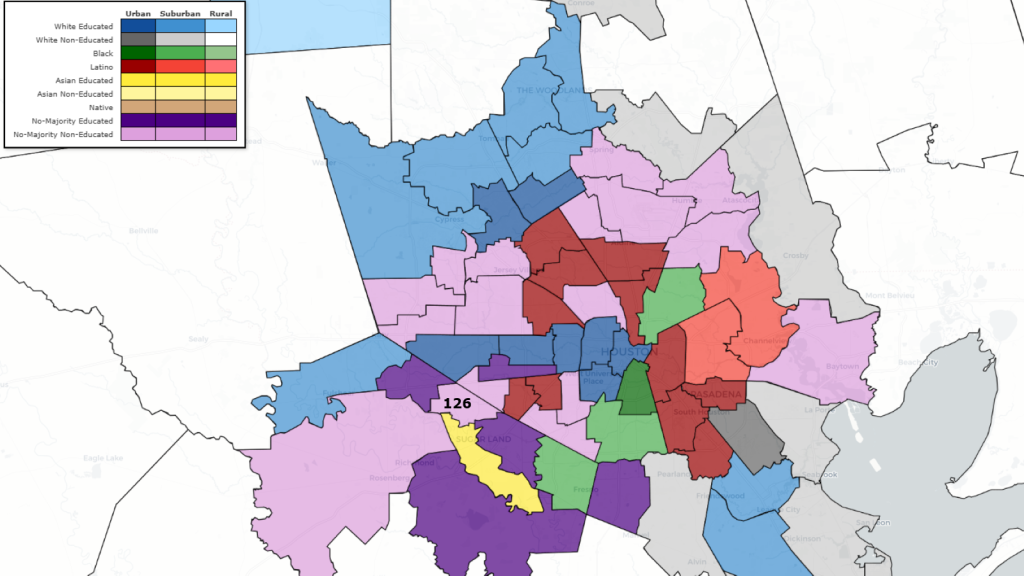 The one metro we haven’t touched on yet, Houston, is home to the next district, 100K District TX-126. The Houston metro is probably the most diverse metro area in Texas, and TX-126 is a small microcosm of that. The area is more or less split down 4 ways between White (17%), Black (27%), Latino (29%) and Asian (28%). With all being said and done, 42% of the area has a bachelor’s degree (33% is the average), and is right at the national average household income, $99K a year.